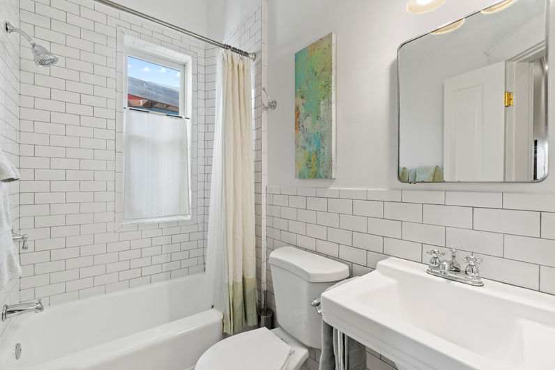 Upstairs, the primary bedroom features a decorative fireplace, beautiful natural light, large walk-in closet, and spa-like en-suite bathroom with marble floors, double vanity and glass shower. You'll love the additional three bedrooms and full bathroom with updated marble flooring and subway tile too!